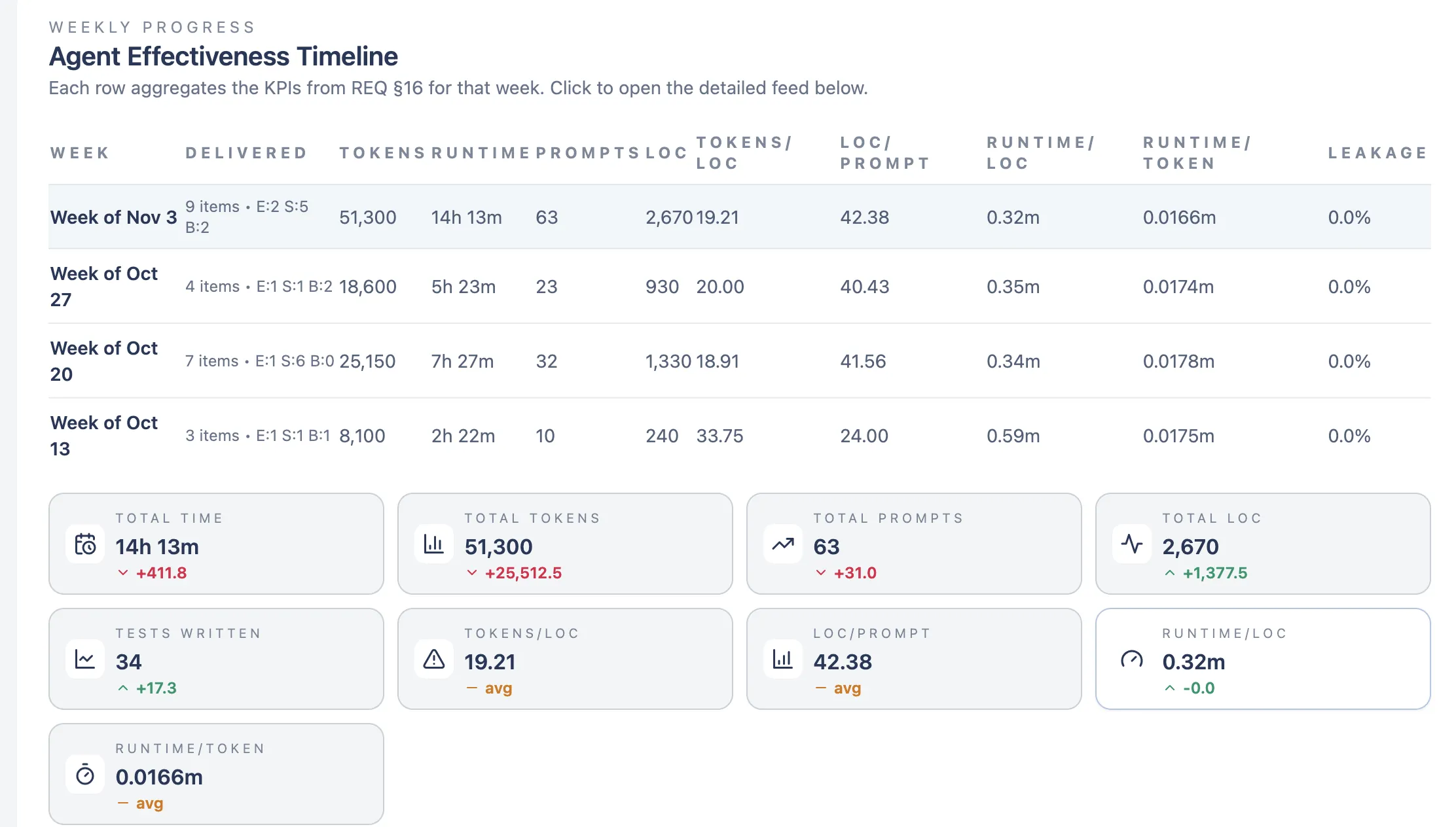 So the honest truth is that right now I don’t have a baseline yet. I’m just starting to monitor it. Beginning this week, I’m changing how I manage tasks and will start observing the epics, stories, and bugs that I deliver each week. For every effort, I’ll assign three values: business complexity, architecture complexity, and lines of code generated. These will be my three main vectors for comparing results going forward.